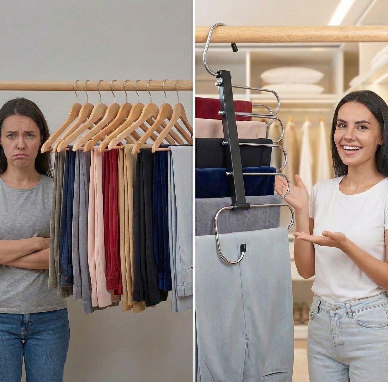 5-in-1 Multipurpose Pant Hangers for Wardrobe | Space-Saving Trouser & Leggings Organizer | Saree Hanger for Closet Storage & Wardrobe Organization (Pack of 1) with box packing.